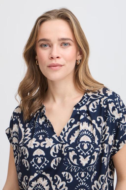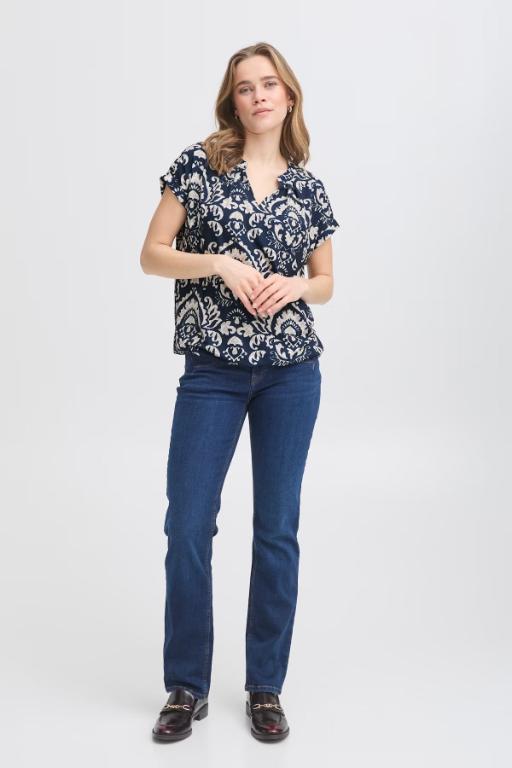 Laissez-vous charmer par cette blouse noire et blanche à imprimé fleuri de la collection Fransa. Sa coupe régulière et ses manches longues assurent un tombé élégant et confortable. Entièrement boutonnée de haut en bas, elle se distingue par de magnifiques boutons noir et doré, ajoutant une touche de raffinement à son design.