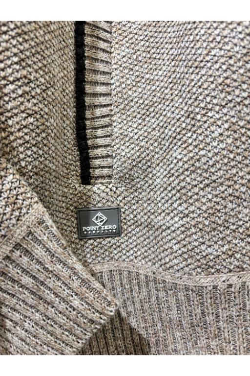 Col montant. Ce pull a des manches longues, une fermeture éclair et une coupe régulière.